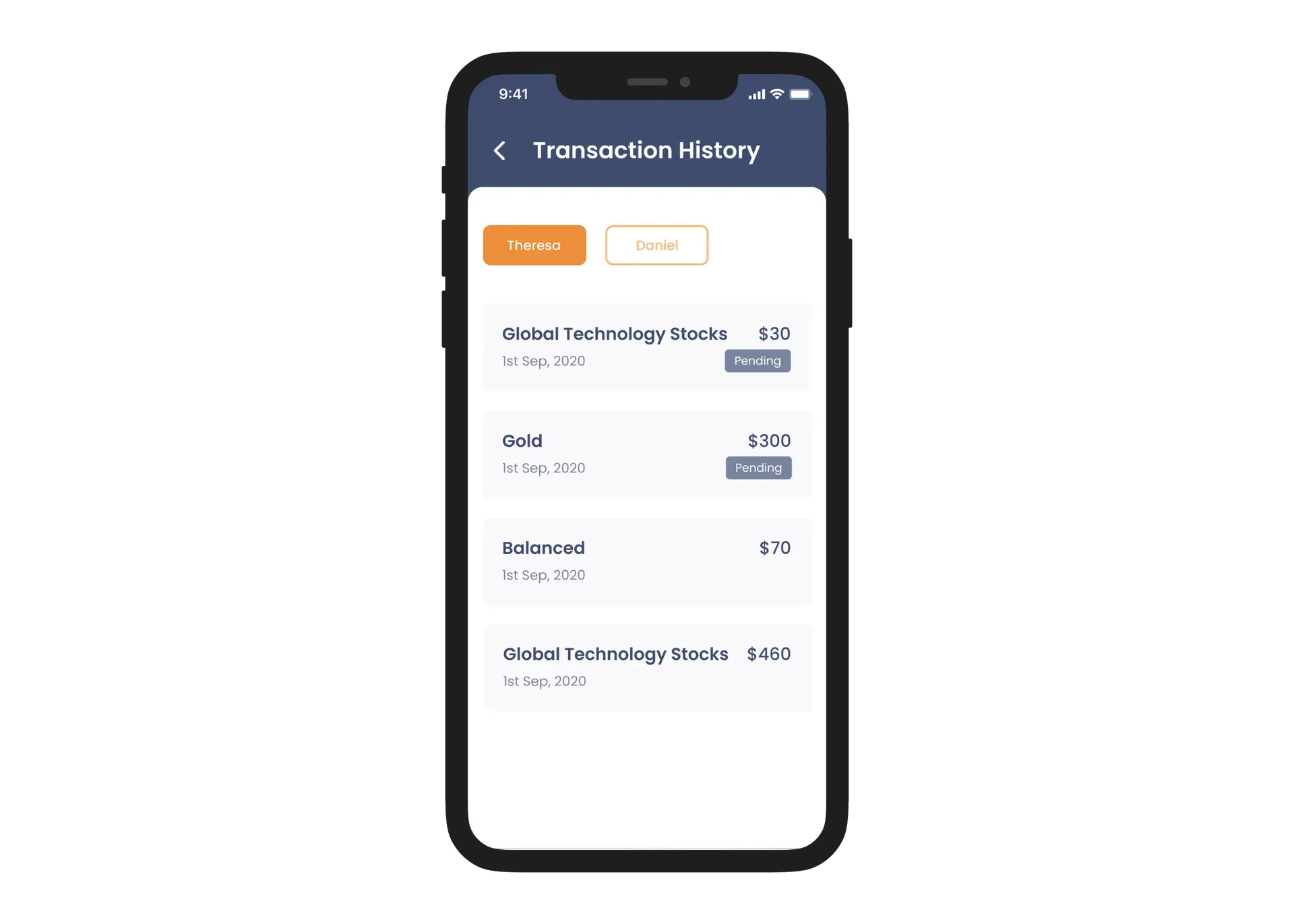 Users can view historical stock performance directly inside the app. This feature helps parents understand how investments evolve over time and make informed contribution decisions. Our design expert implemented structured data visualization and clear chart logic, so complex market data remains readable for non-professional investors.